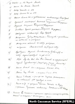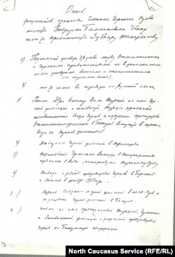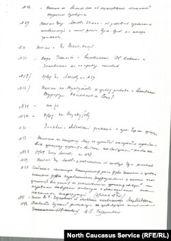 Опись документов, сданных Гайдаром Бамматом члену горского правительства Зубайру Темирханову. Среди переданных документов - важные дипломатические бумаги.